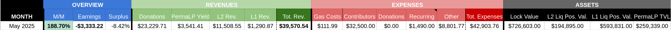 May marked a meaningful turning point in the Collective’s journey back to financial sustainability. While challenges remain, the strong performance of our BOLD-related strategies, growing Perma-LP positions, and a renewed focus on lean operations have brought us measurably closer to our August surplus target.